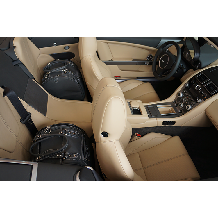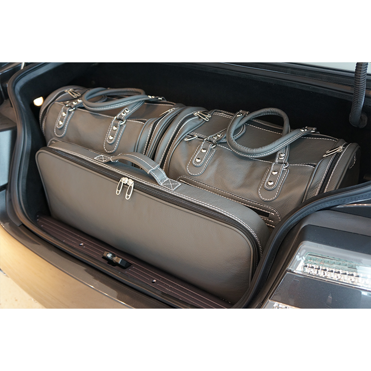 Skräddarsydda bagageväskor med utsida i Italienskt läder, till din Aston Martin DBS Volante. Fem kvalitetsväskor som maximerar användandet av hela bagageutrymmet…