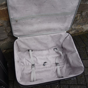 Resekittet kommer med två väskor av modell resväska med utdragbart handtag som ryms i bagageluckan. Vänligen observera – en del bilar har ett uppstickande hörn i bagageutrymmet, för dessa bilar finns en speciell version av väskor (se en utav bilderna). Sedan finns två väskor för utrymmet bakom sätena (se bilder). Varje väska är gjord för att passa in på sin speciella plats i kofferten.